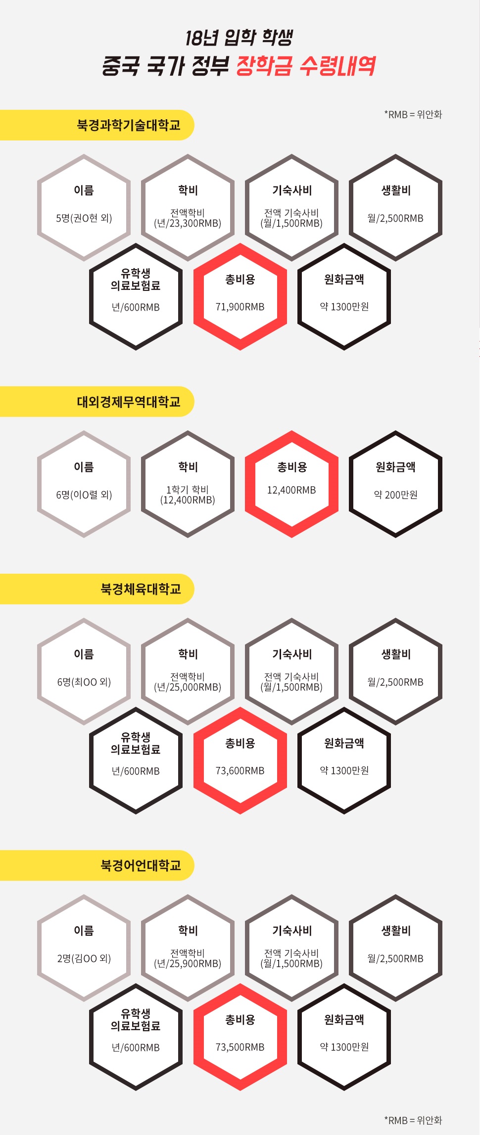 더불어 중국대학은 매년 9월 신학기가 시작되며, 수능 후 중국대학을 선택해도 학년 유예없이 대학진학이 가능합니다. 코로나19로 막힌 영미권 유학의 길, 지금은 중국유학이 답입니다. 기회의 땅 중국에서, 멋진 꿈을 펼칠 여러분을 기다립니다.