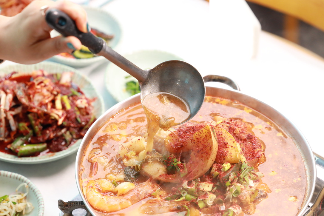 꽃게살이 국물에 녹아들면서