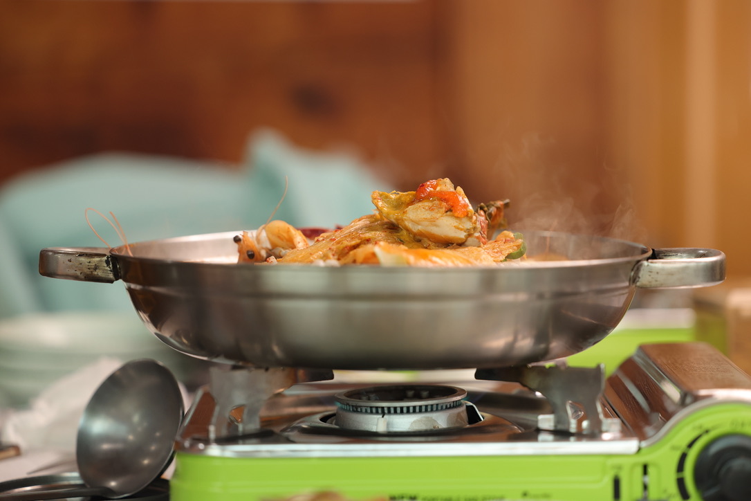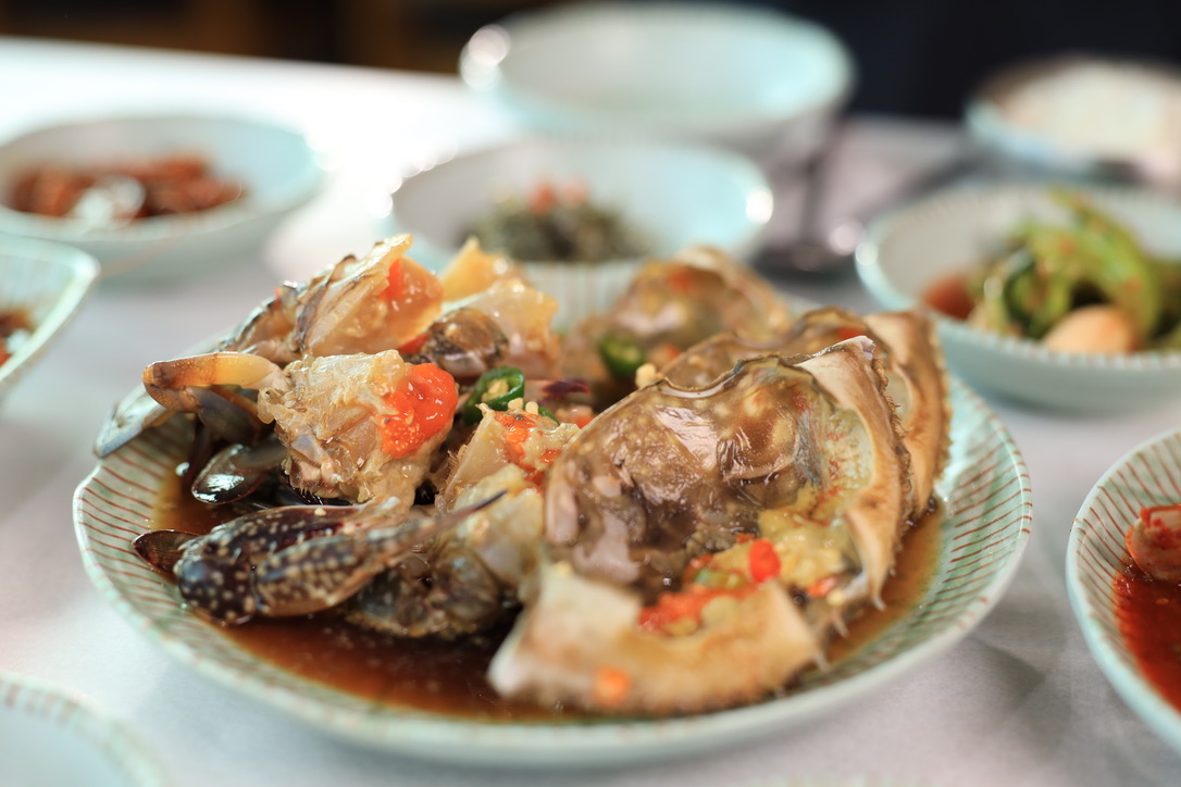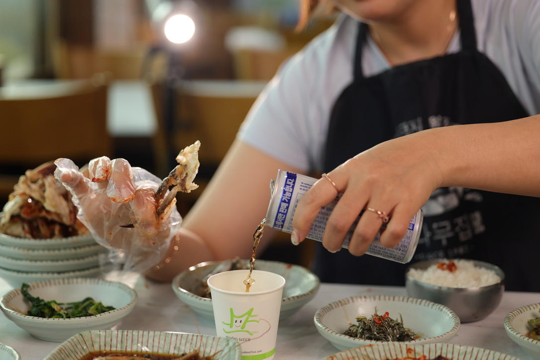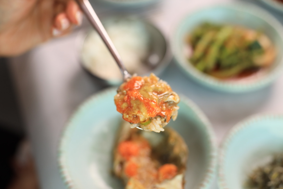 밑반찬도 아주 푸짐하게 나오고,, 빨리 게국지가 끓기를 바라는 마음으로 게국지를 바라보던 중에 게장이 3가지 한꺼번에 주르륵 나오는데.. 너무나 자연스럽게 공깃밥 추가햇어요.. 너도 나도 할 것 없이..