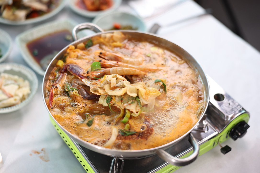 게장들이 대박이더라구요. 특히나 저의 개취는 바로 간장게장!!! 거기에 게국지 보글보글 끓고 나니까 그 맛도 또 일품이었던 기억이.. 정말 깔끔하고,, 국물도 시원하고, 맛이 기가막히게 좋았던 꽃지해수욕장 원조게국지 맛집의 게국지.. 재료도 엄청나게 좋은 것을 쓰는데다가,,, 게다가 이곳이 정말 맨 처음으로 게국지를 판매하기 시작했다는 진짜배기 꽃지해수욕장 원조게국지 맛집이어서 일까요???