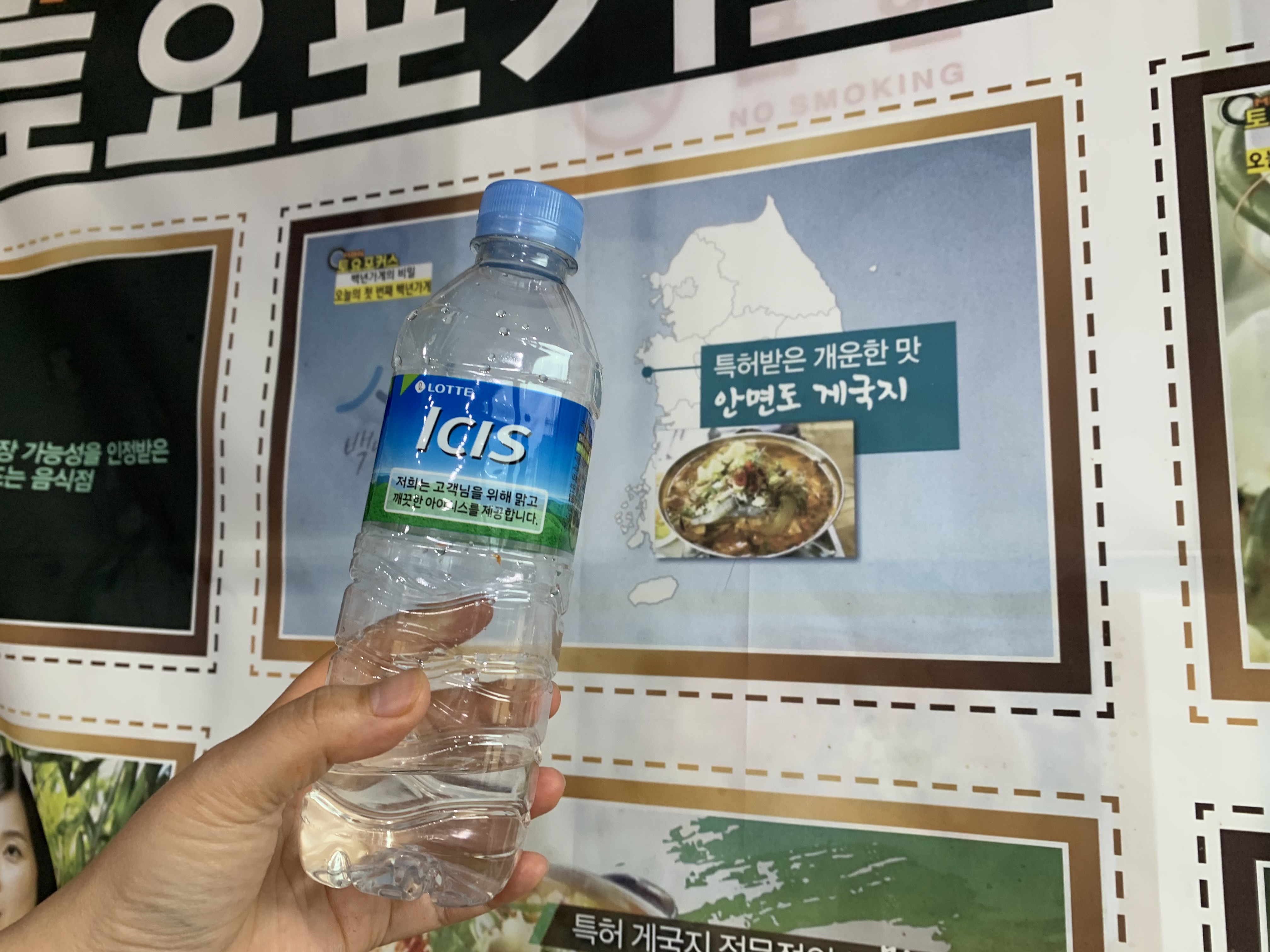 깔끔하게 일회용 생수병을 사용하고 계시고요