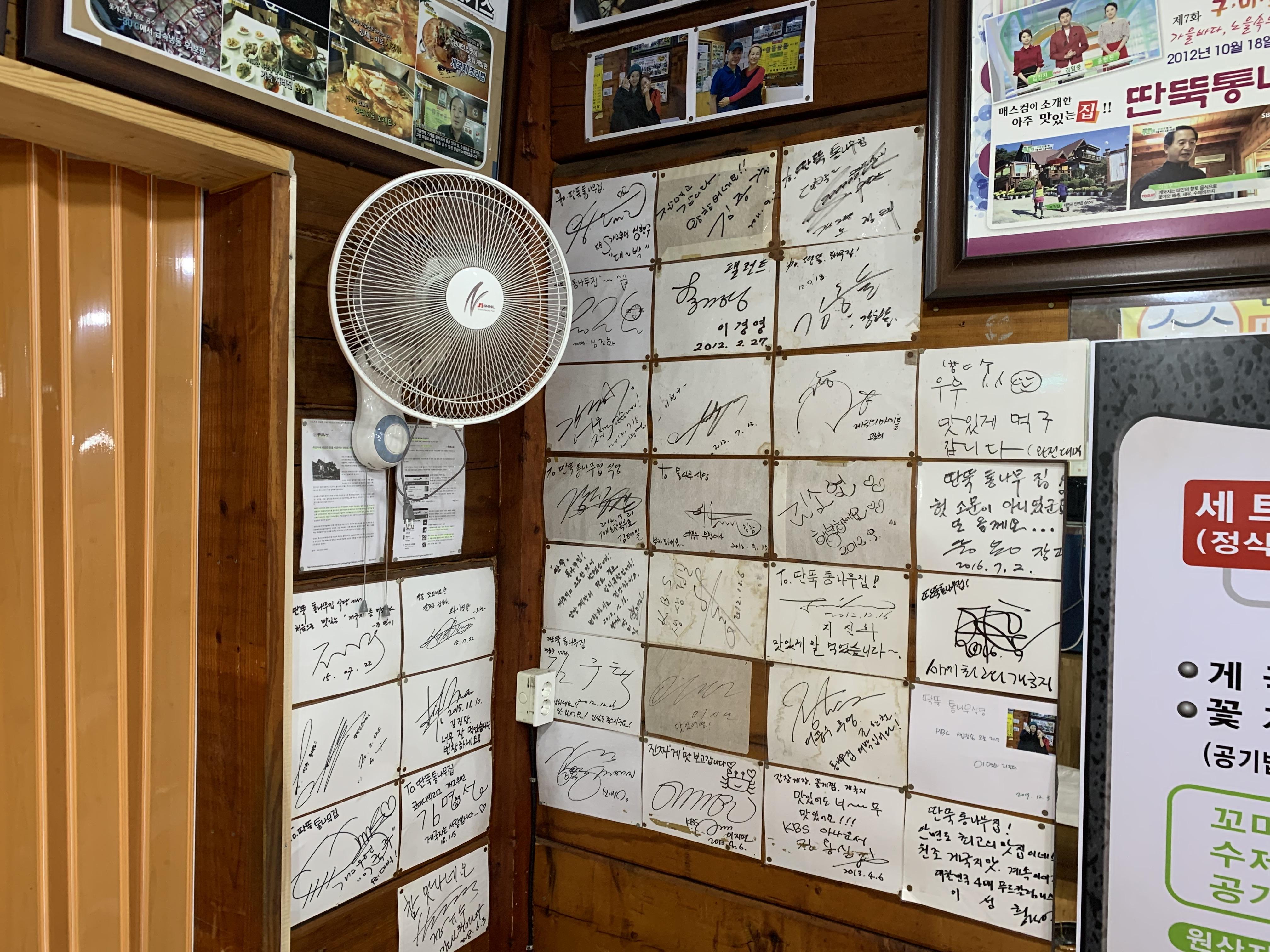 자리에 앉으니 벽면에 연예인들의 싸인이 한가득 붙어있더라고요